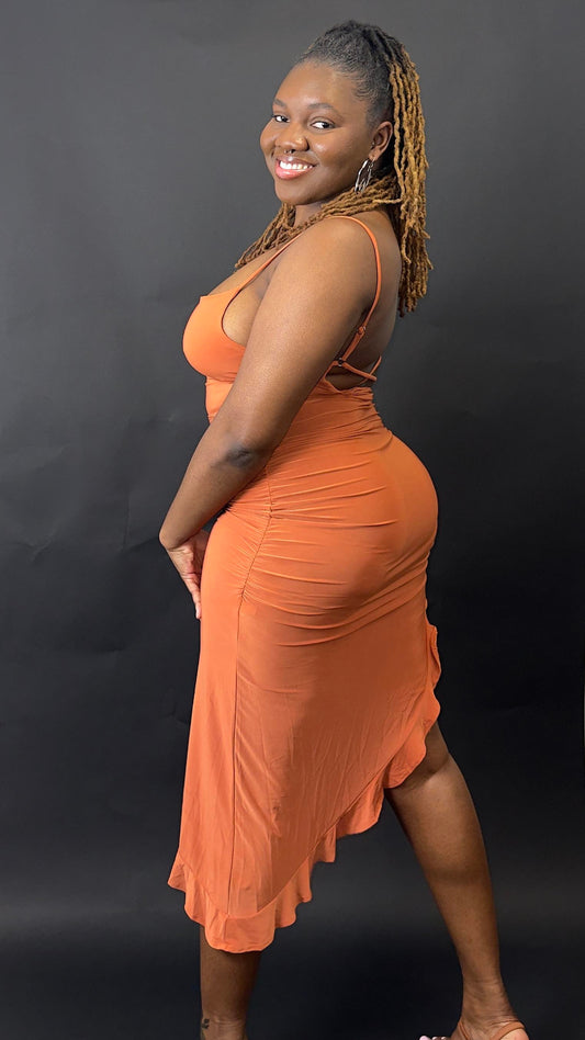 Emma Ruched Mdi Dress - Dark Mauve (Plus)